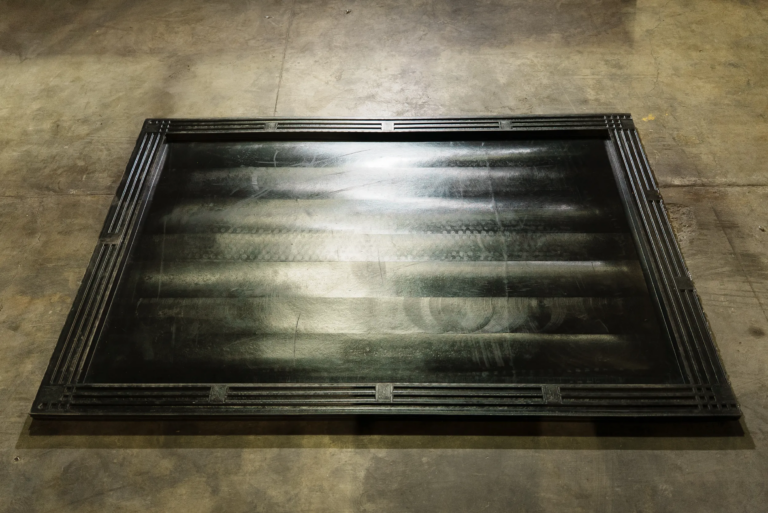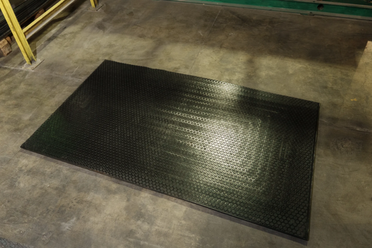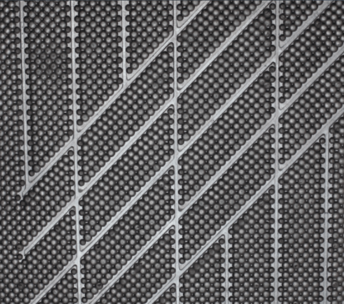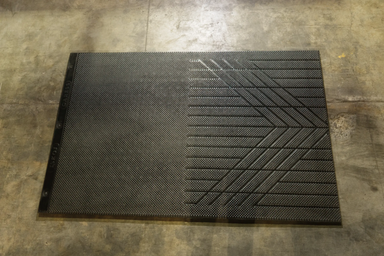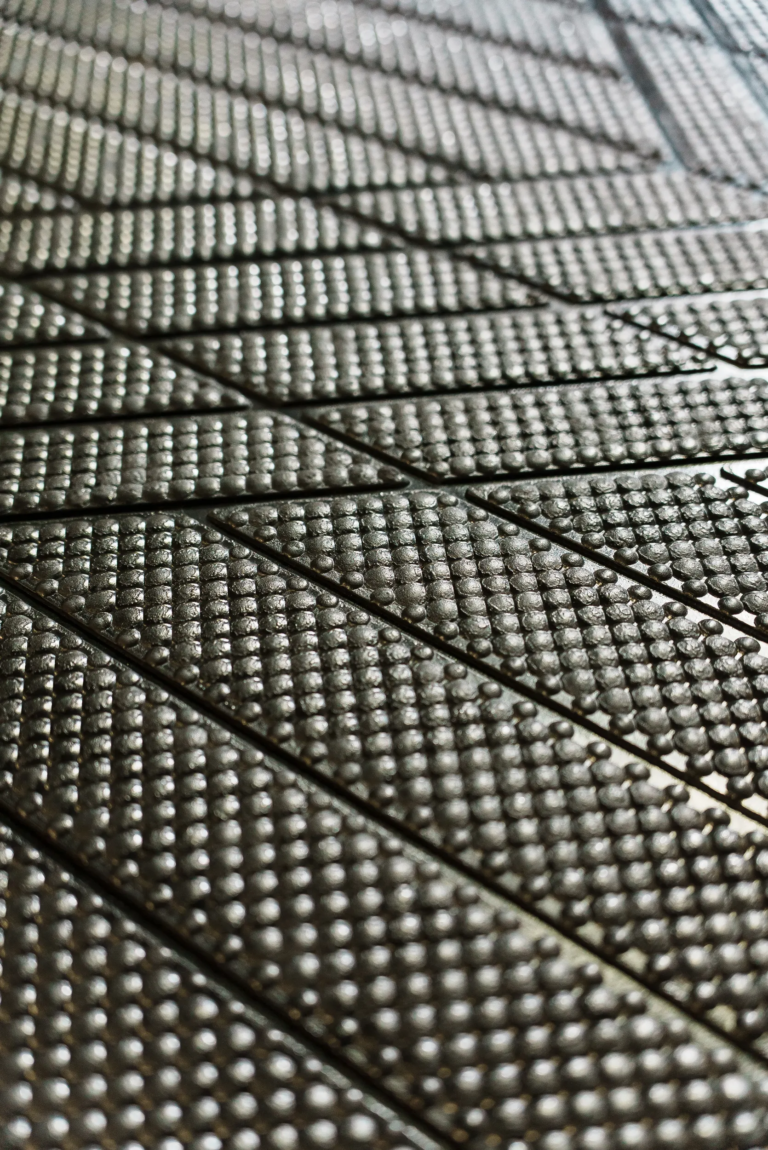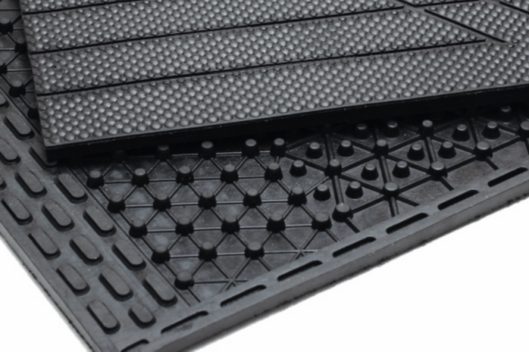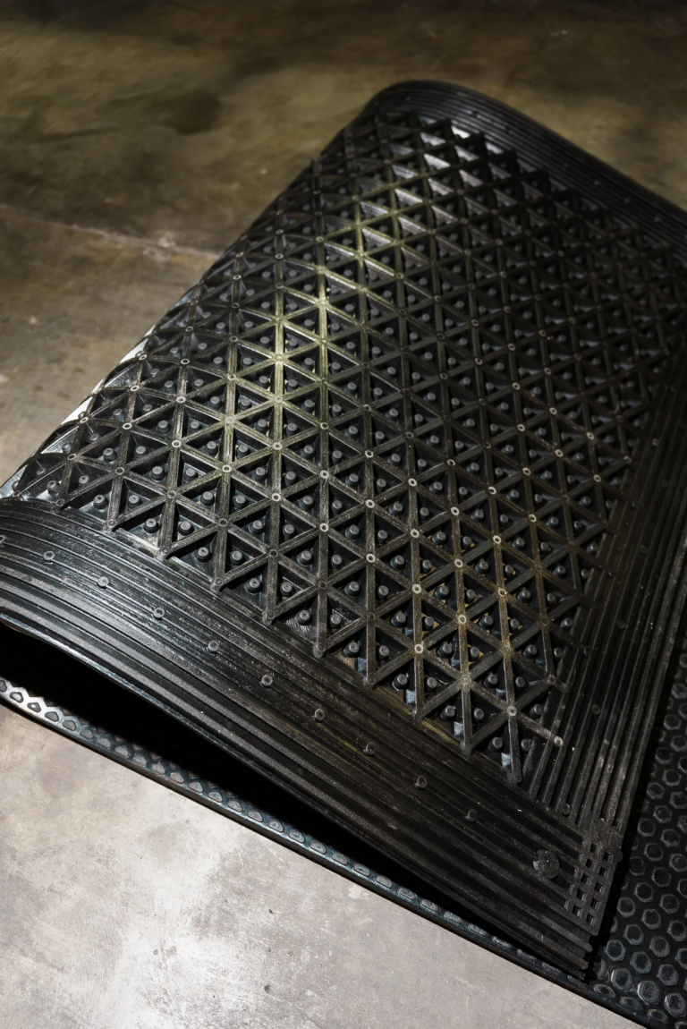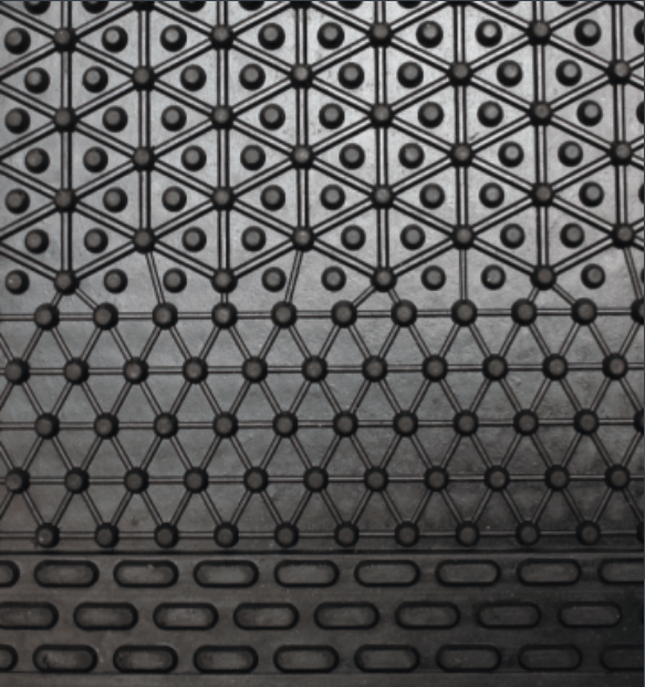 Уклон на покрытии в сторону навозного прохода и специальный рельефный рисунок в виде продольных полос на поверхности способствует более быстрому стеканию жидкости и высыханию ковра, что обеспечивает чистоту в стойло-месте